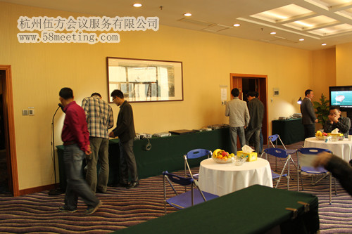 會議場地已經(jīng)布置好了,現(xiàn)場擺好了茶歇可以供參會人員交流之后可以使用。