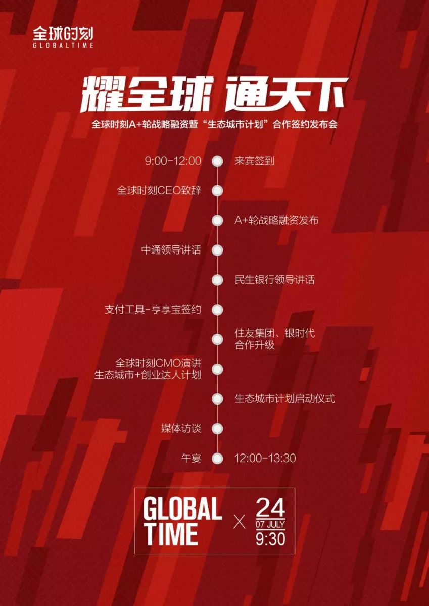 2018 年7 月24 日,剛剛在年初獲得A輪投資的精品社群電商平臺(tái)全球時(shí)刻,再次在杭州舉行了融資發(fā)布會(huì),宣布獲得國(guó)內(nèi)知名快遞巨頭—中通快遞集團(tuán)的A+輪戰(zhàn)略投資。同時(shí),在發(fā)布會(huì)上,全球時(shí)刻與多家重量級(jí)機(jī)構(gòu)簽訂了戰(zhàn)略合作協(xié)議,通力合作打造全新的“生態(tài)城市計(jì)劃”!