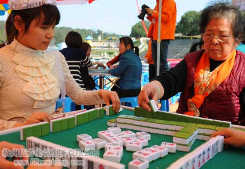 現(xiàn)場不時會見到美女大戰(zhàn)、蘿莉老嫗競爭的場面。 令伍方會議服務(wù)不得不感嘆麻將的魅力,不愧為國粹啊。