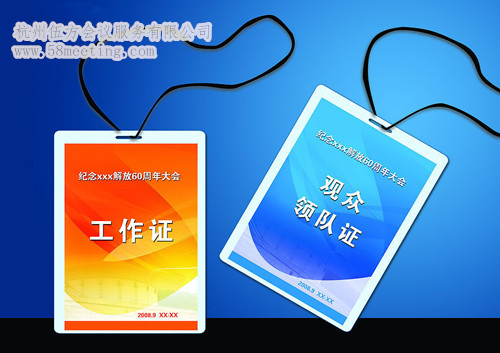 工作證。它發(fā)給會議工作人員專用,上面均印有姓名、編號,有時還須貼有本人近照。