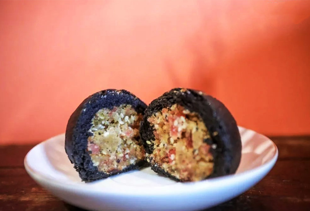 今年中秋,耀華以史為鑒,挖掘杜甫駐蓉文化,創(chuàng)新研發(fā)具有成都特色的杜甫餅,以此抒發(fā)對(duì)杜甫的懷戀與崇敬之情。竹炭粉制作的黑色面皮,印章緩緩揭起,露出金色的杜字,低調(diào)而不失品質(zhì)。一口咬下酥香的外皮,露出淡粉色的內(nèi)餡,先咸,后甜,回麻層層遞進(jìn)的感受,給你滿滿的幸福感!